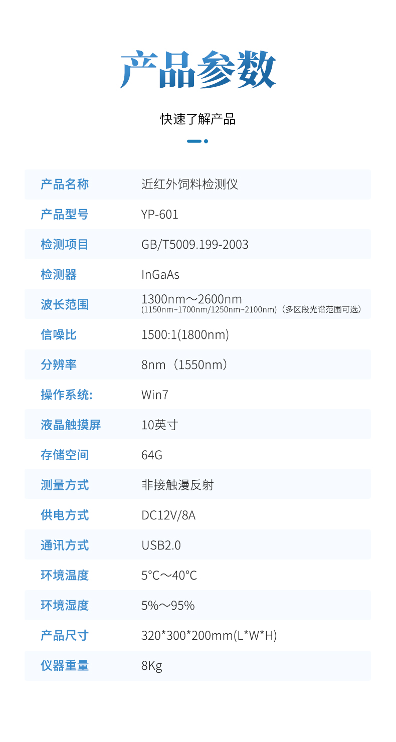 YP-601近紅外光譜儀采用新型的傅里葉變換MEMS技術,適用于固體及粘稠狀樣品的快速、無損、定性/定量檢測。在化工、醫藥及科研等行業有著廣泛應用。以低使用成本、培訓成本和維護成本為企業帶來滿意的投資回報率。